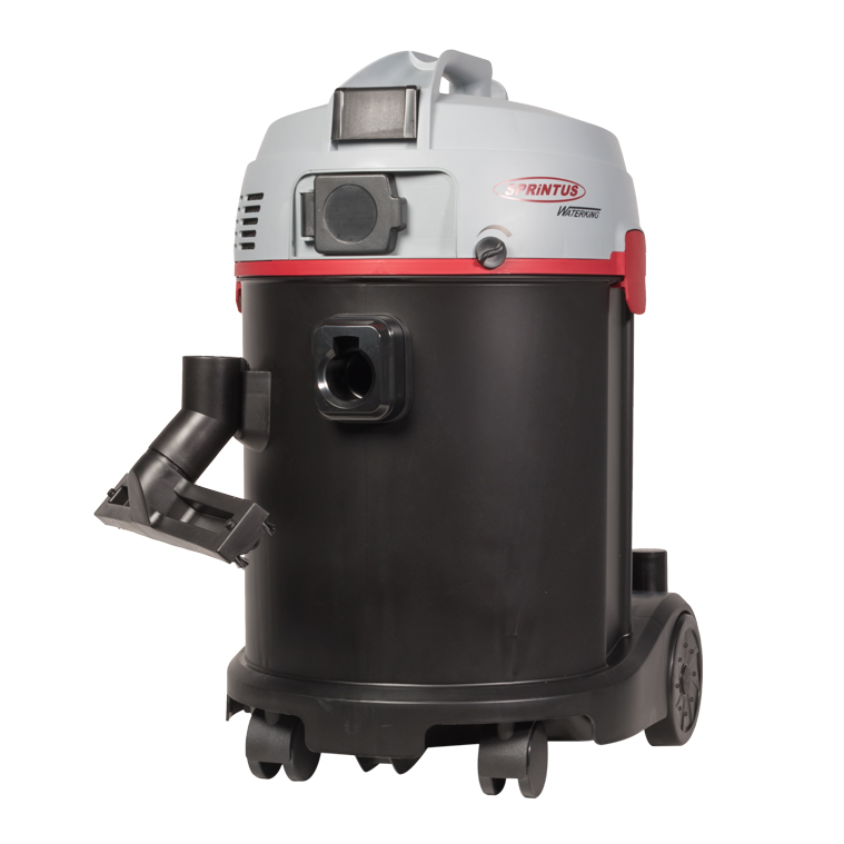 30 litre sınıfı elektrikli süpürgeler arasında "Waterking" temizlik tesisleri için en uygun olanıdır. Son derece yüksek performans (70 L/Sn'de 260 mbar emiş gücü). 360 mm genişliğindeki zemin başlığıyla birlikte kullanılan "Waterking", çeşitli yüzeylerde olağanüstü performans gösterir. Mekanik çıkış regülatörü sayesinde emiş gücü her türlü zemin kaplamasına göre ayarlanabilir. Entegre üfleme fonksiyonu ile filtreler ve çalışma tezgahları üflenerek temizlenebilir veya ıslak yüzeyler üflenerek kurutulabilir. Hortum, güç kablosu ve aksesuarların cihaz üzerinde saklanmasının yanı sıra boru için park konumu ve ergonomik tutma kolu, optimum kullanım sağlar ve "Sulama"yı profesyonel kullanıma uygun hale getirir. Başlıkta bulunan yüksek performanslı elektrik prizi, daha fazla temizleme makinesinin doğrudan vakum yoluyla kullanılmasına olanak tanır.